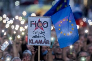 BRATISLAVA. V Bratislave na Námestí SNP sa vo štvrtok konal protest proti krokom súčasnej vládnej koalície.